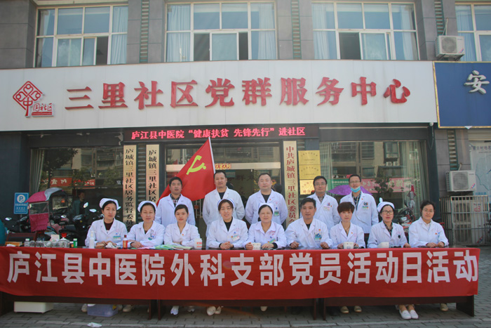 为了发挥党员先锋模范作用,更好的服务百姓健康,4月10日上午,我院与庐城镇三里社区联合组织开展了“党员活动日”奉献爱心义诊活动。来自我院外科、骨伤科、康复科、妇产科、眼科、体检科等十几名党员医务人员将健康和关爱送到人民群众身边,以实际行动向党献礼。