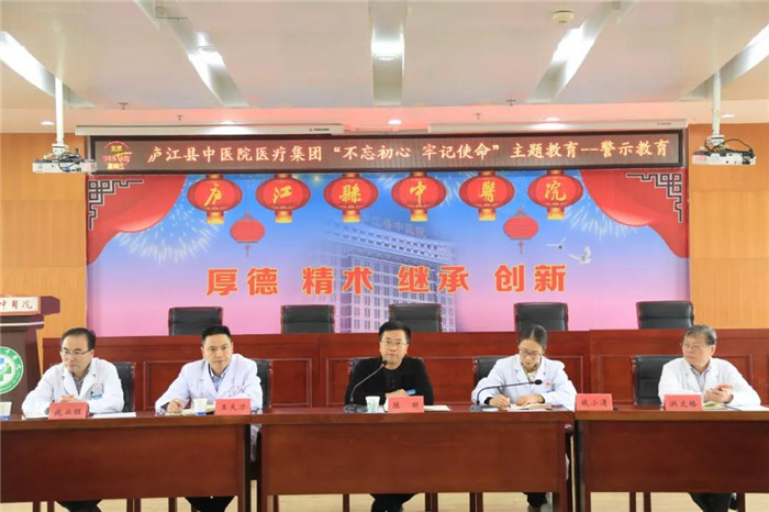 为增强广大党员干部的廉政意识、底线意识,扎实推进“不忘初心、牢记使命”主题教育工作,10月17日下午,庐江县中医院医疗集团召开“不忘初心、牢记使命”警示教育会,医疗集团负责人、县中医院院长、党委书记陈明及院班子成员,医疗集团七家分院院长、副院长,“三办十三中心”以及医院职能科室负责人参加会议,会议由院党委副书记钱小清主持。