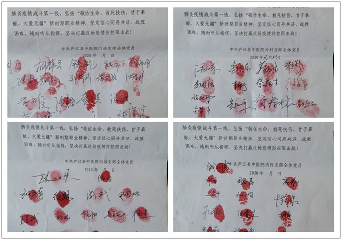 名党员就是面旗帜。“不计报酬、不计生死、听从指挥、全力奋战在抗击新型冠状病毒感染的肺炎疫情防控第线”……疫情来临,庐江县中医医院全体共产党员、入党积分子响应号召,主动请缨,他们写的“请战书”让人泪目。