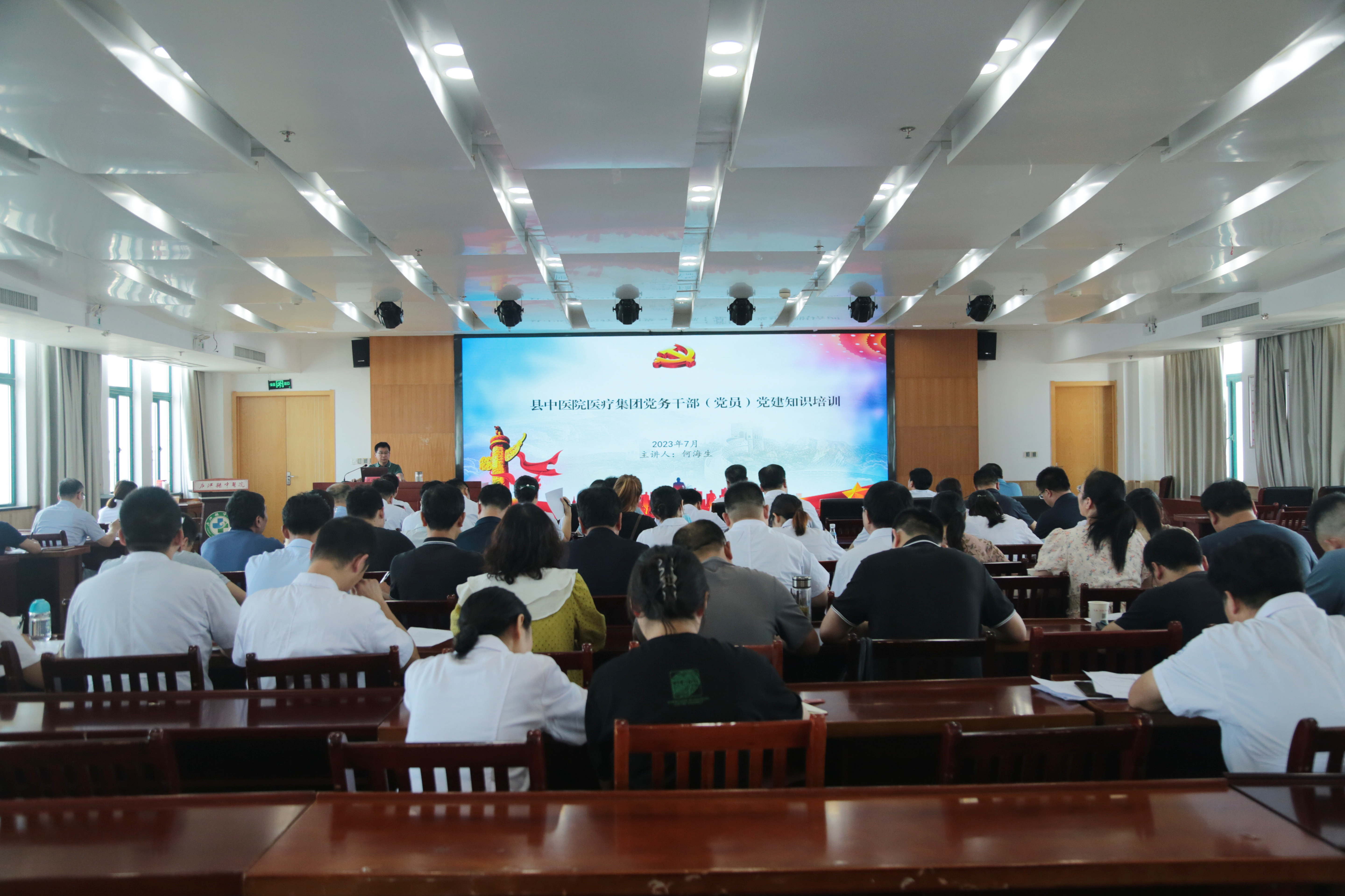 本次培训特别邀请到县直机关工委副书记何海生作了题为《县中医院医疗集团党务干部(党员)党建知识培训》的专题授课。他围绕组织设置、规范党支部组织生活、业务资料和会议记录、基层党支部的换届选举、“五亮”行动和星级党支部创评、发展党员基本要点与时间要求等五个方面进行了详细的分析析和解读,帮助大家规范工作标准,破解工作难题。