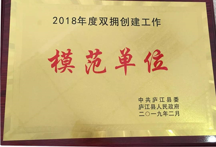 近日,中共庐江县委发文《中共庐江县委 庐江县人民政府关于表彰2018年度综合考核、招商引资等项工作先进集体和个人的决定》(庐字〔2019〕9号),县中医院荣获“2018年度庐江县双拥模范单位”称号。