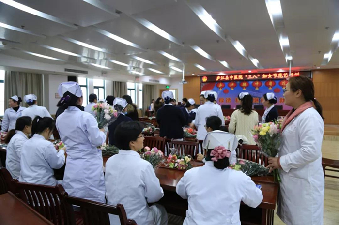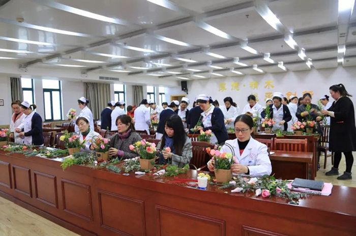 为庆祝“三八”国际劳动妇女节,营造欢乐、和谐的节日气氛,让女职工们在忙碌的同时愉悦身心,3月5日下午,在中国医师协会以岭关爱医师健康专项基金项目的大力支持下,县中医院举办了场别开生面的花艺培训。县妇联副主席江小华、县卫计委妇联主席王川、中医院副院长钱小清及医院女职工约100余人参加。