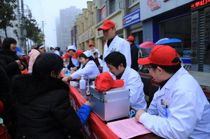 活动第二站——庐城镇三里社区。县中医院行政支部、外科支部联合组织20余名专家、青年志愿者走进三里社区,开展“3·5学雷锋日志愿服务活动”,为社区居民提供爱心义诊服务。