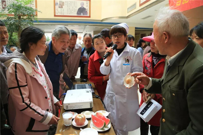此次讲座由我院健康巡讲专家孙红梅进行现场授课。课堂上,她以“三减三健”为切入点,围绕合理膳食、适量运动、控烟限酒等为重点内容,向广大居民详细讲解健康科学的生活方式。结束后,她对居民有关健康饮食、日常养生、慢性病预防等问题进行逐解答。