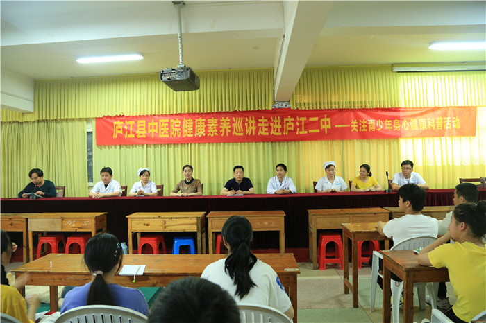 为普及学校师生健康知识,树立健康理念,促进健康行为,进步提高健康素养水平,5月24日下午,庐江县健康巡讲专家——严红梅走进庐江二中为学生们带来场精彩的健康科普讲座。活动现场,我院眼科、骨科、心理咨询等医护专家还为学生们提供义诊服务。