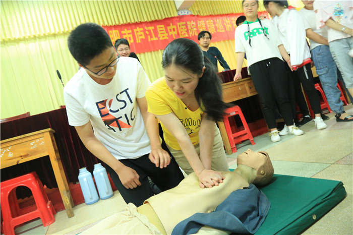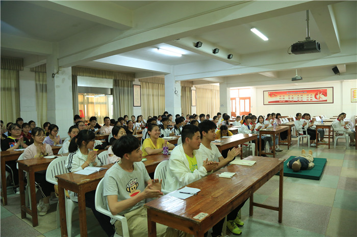 讲座中,健康巡讲专家以通俗易懂的语言,图文并茂的方式,为学生们讲解烧烫伤等急救知识,倡导良好的卫生习惯、健康的生活方式。同时,现场讲解、示范并指导学生进行心肺复苏急救,提升了应急救助能力。同学们积互动,气氛活跃,巡讲专家对大家提出的各种健康问题进行了详细解答。