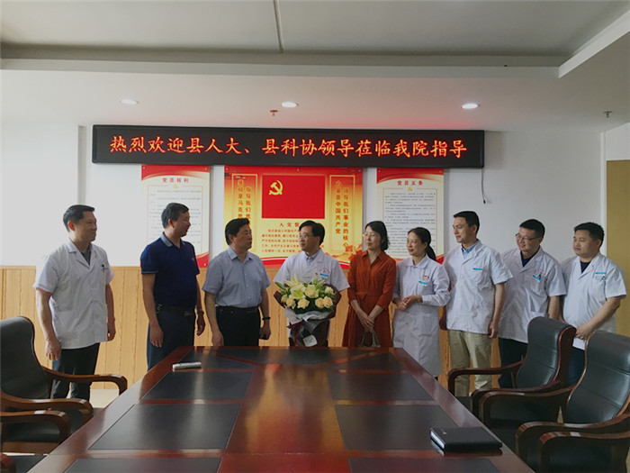 5月29日上午,在全国科技工作者日到来之际,县人大常委会副主任朱仲平行来到县中医院走访慰问医院科技工作者。我院导班子成员及医院科技工作者代表参加了会议。