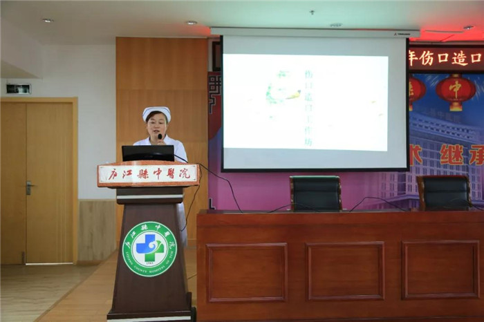 活动开始啦!伤口造口专科小组组长许玉军向大家介绍护理工作坊、解读PUSH量表。