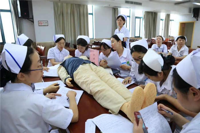 小组成员分成两组,针对给出的病例,对模拟人展开详细的查体、测量、评估、填写与护理措施拟定。