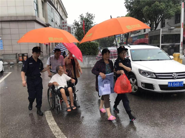 6月19日清晨,天空下起滂沱大雨,路上行人急冲冲四处躲雨。而在庐江县中医院内却上演着这么温暖的幕——医院车管员们拿着小黄伞,主动为每位前来就诊的患者打伞,传递温暖。暴雨直下,“小黄伞”直在,为您提供贴心服务。这暮暮温情,让原本焦虑的患者和家属,心生股细细的暖流,连连说“谢谢”。