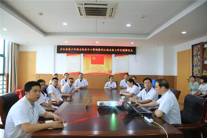 6月29日上午,庐江县青少年视力防控中心在县中医院正式揭成立,同时揭成立的还有“陶黎明专家团队工作室”。安徽医科大学第二附属医院眼科陶黎明专家团队,县卫健委党委书记、主任董林,县中医院导班子成员及部分科室负责人出席揭仪式。新成立的青少年视力防控中心将专业从事青少年学生近视、 远视、 散光、斜视、弱视等防控工作。