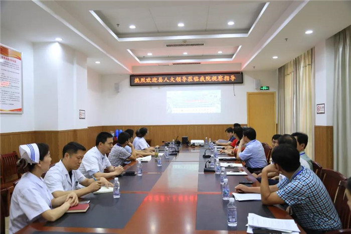 7月3日上午,县人大常委会副主任朱仲平带县人大代表行到我院进行调研。县卫健委主任董林、副主任张延明、张先锋,县中医院院长陈明、副院长钱小清、王大力等导陪同。