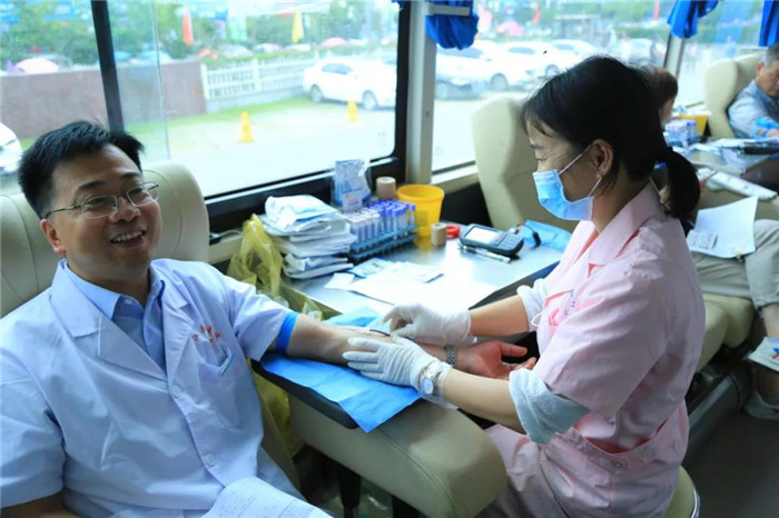 7月12日上午,庐江县中医院组织职工积开展无偿献血活动,缓解全市临床用血供需紧张局面,让涓涓细流铺就生命之路。个个医务工作者登上献血车,挽起白衣,伸出臂膀,让热血流淌,把爱心传扬。
