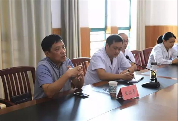 9月10日下午,安徽中医药大学第附属医院肾内科王亿平教授来我院就肾内科建设发展进行交流指导。院党委书记、院长陈明,工会主席钱业旺,医教部、内二科、血透室、内镜中心科室负责人及部分医护人员参加座谈会,会议由院党委书记、院长陈明主持。
