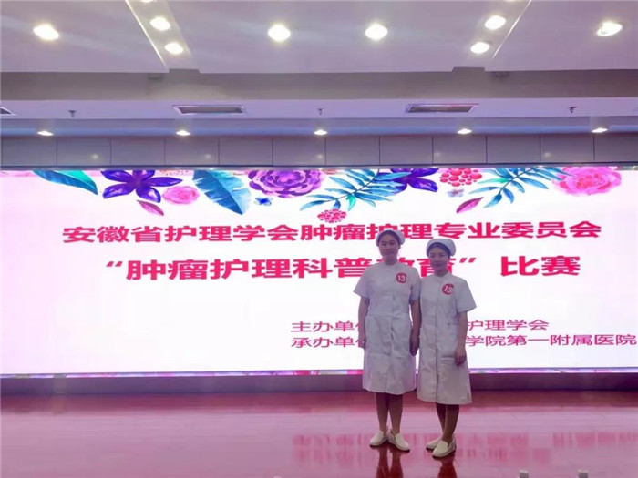 金秋送爽,送来阵阵清凉,也送来连连喜讯。9月28日,我院选派的徐瑞琳、王晓翠两位选手,在安徽省护理学会肿瘤护理专业委员会举办的“肿瘤护理科普教育”比赛中,我院作为唯家县级医院在32家参赛医院当中脱颖而出,荣获二等奖。