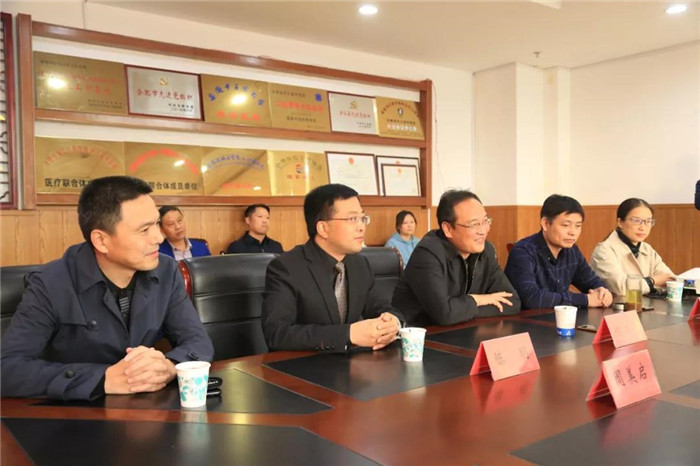 会上,副县长何江宏对孙光荣大师行表示热烈的欢迎,并简要的介绍了庐江近年来的发展情况,院党委书记、院长陈明就医院近年来发展情况、未来发展规划、中医药文化建设及中医药特色服务举措进行汇报。