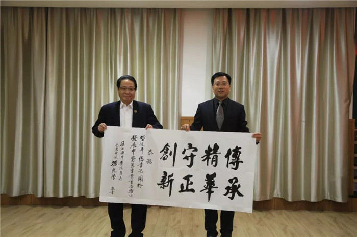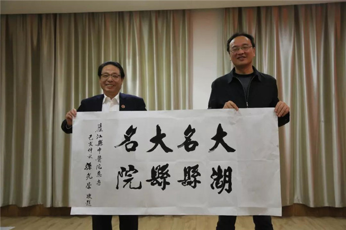 座谈结束,孙光荣教授还为我院挥毫题赞:“传承精华、守正创新”和“大湖名县、大县名院”。