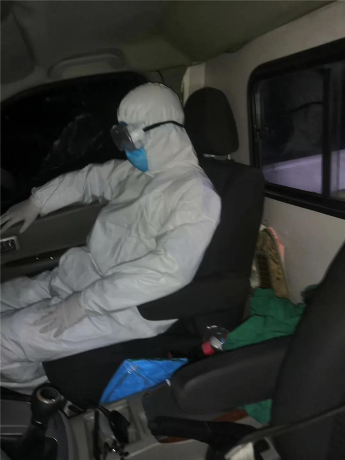 在转运途中,为了不让急救车里的氛围太压抑,分中心医护人员尽量保持平常、轻松的气氛,不让疑似病人有悲观、负面的情绪。转运工作结束,工作人员马上对出车人员、车辆、物品进行消杀,完成这系列工作,需要好几个小时。