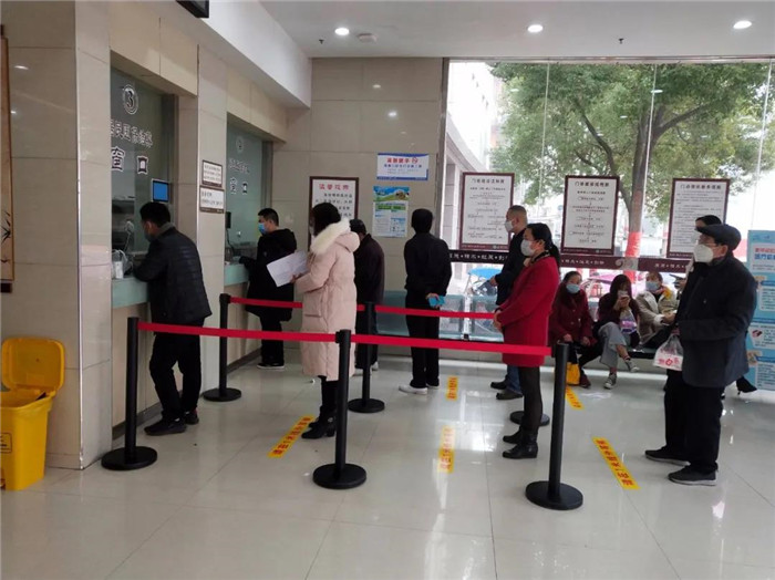 设置隔离带和1米等候线,由导诊、安保、值守人员正确疏导人员,确保无人员聚集现象;在医院门诊大厅,患者正井然有序地排着队,在工作人员的引导下,大家相互间隔在1米以外;利用导诊和电子叫号系统,实现看病先预约、后检查;实行“室医患”,有效降低交叉感染风险。