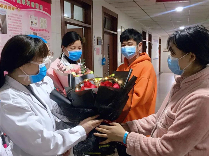 孕妈妈们对白衣天使表示感谢,送上美丽的鲜花