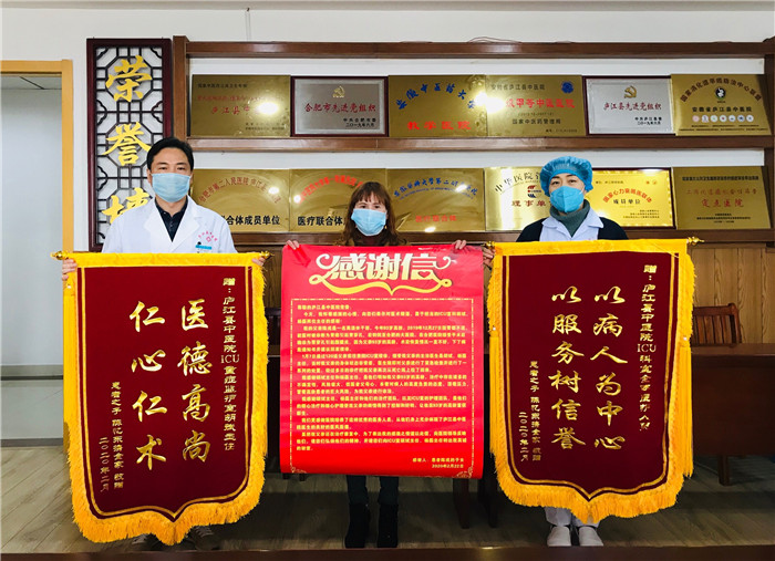 锦旗上“医德高尚,仁心仁术、“以病人为中心、以服务树信誉”正是这个故事的结局,也是更多故事的开始。面对锦旗,重症医学科的医护人员们说,“生命相系,无私重托,医患和谐,是我们所有医护人员奋斗的动力”,庐江县中医院愿以流的服务、流的技术、全方位的治疗为患者保驾护航!