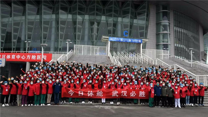3月8日,我院驰援武汉白衣战士——胡斌、卢睿敏所在的武汉体育中心方舱医院休舱。