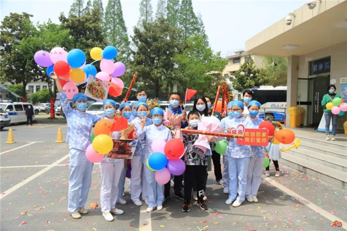 “欢迎英雄回家!”众多同事和群众早早等候在医院门口列队欢迎,大家手捧鲜花,高举创意欢迎标语,准备了凯旋庆祝蛋糕......现场气氛热烈,热情高涨,掌声不断。