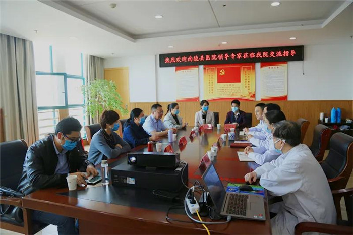 4月28日上午,南陵县医院尹凤院长行7人来我院就信息化建设工作进行交流,院班子成员,信息管理科、医教部、护理部等科室负责人陪同参加。