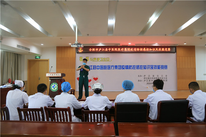 为加强医院感染管理,提高全院医务人员的和院感知识水平,有效降低医院感染的发生,5月5日,由县总工会、县卫健委工会主办,县中医院医疗集团承办的疫情防控感控知识及技能竞赛在中医院第三会议室举行。县总工会经济工作部部长汪贤玉,县卫健委工会主席沈爱国,县中医院医疗集团党委书记、院长陈明,党委副书记钱小清出席活动。来自集团内34支代表队共68名选手参加比赛。比赛内容分为知识竞赛和技能竞赛两个阶段依次进行。