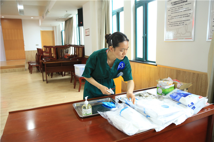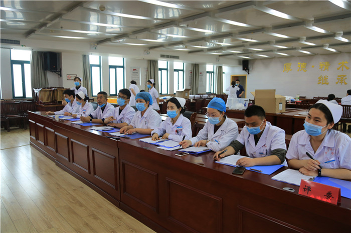 上午10点,技能竞赛拉开帷幕。曾奋战在武汉线、县定点医院隔离病区、县医学观察隔离点等我院医护专家担任技能竞赛评委。