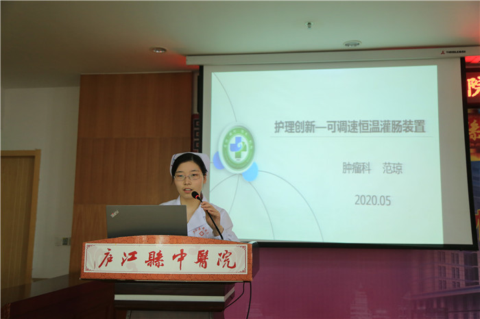 为进步提高护理人员的创新意识,以创新带动护理服务质量提升,5月7日下午,庐江县中医院护理创新比赛在第三会议室举办,来自全院24个科室参赛选手共申报了26个创新项目参加此次比赛。护理部主任潘玉荣、副主任王方苗及部分科室护士长担任比赛评委。