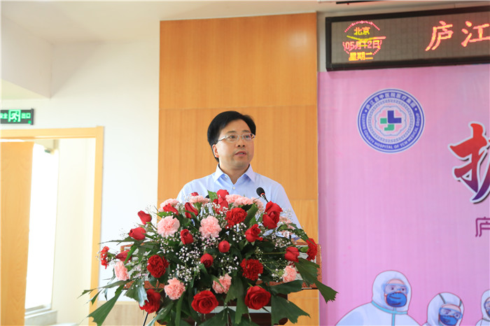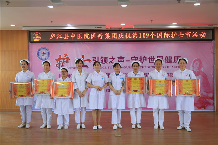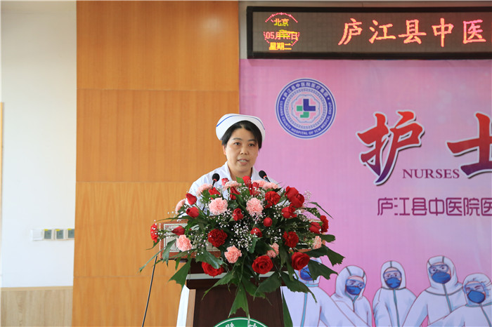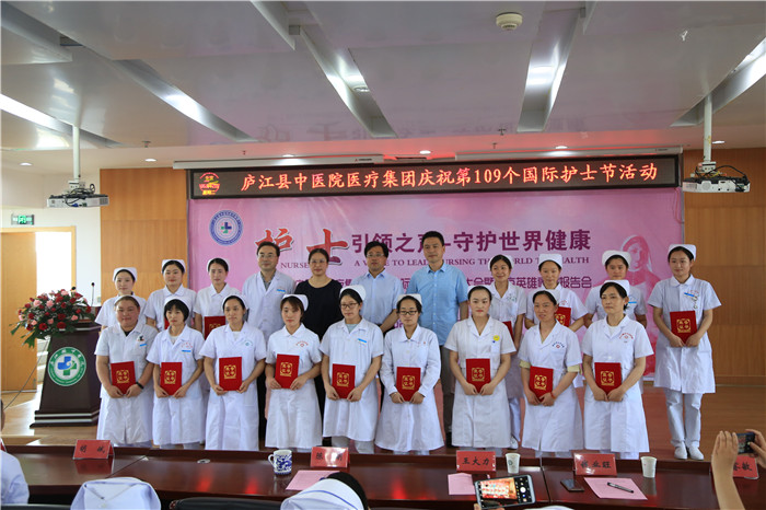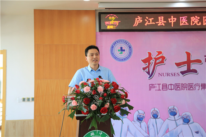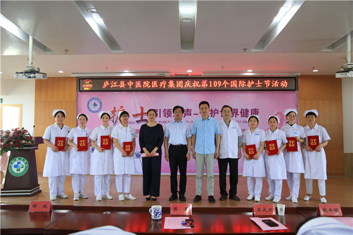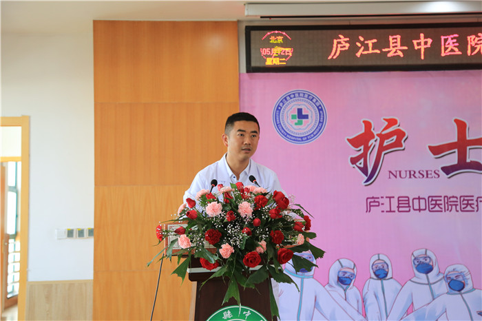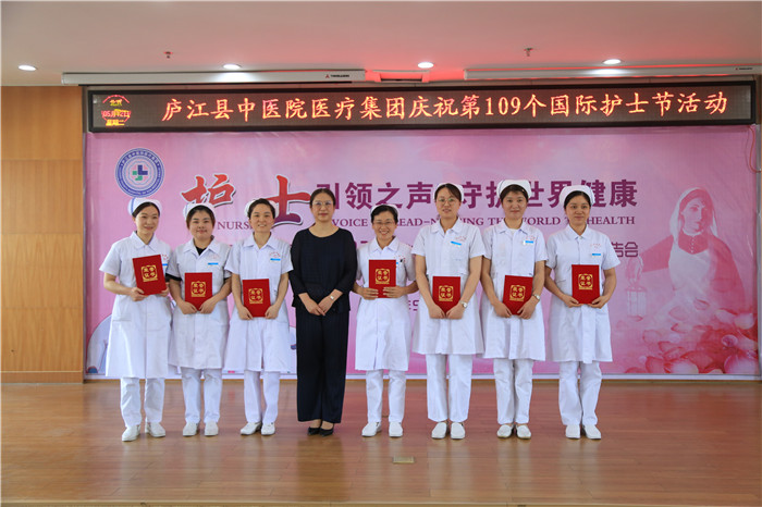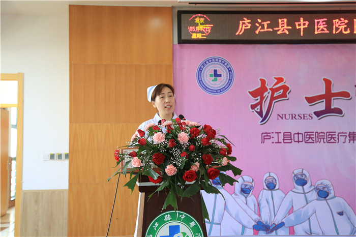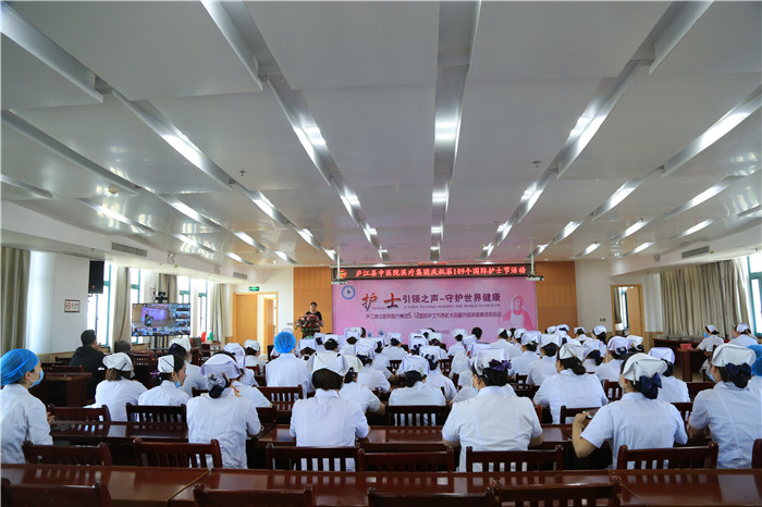 5月12日下午,庐江县中医院医疗集团举办以“护士引之声 守护健康”为主题的5.12国际护士节表彰大会暨抗疫英雄事迹报告会。医疗集团党委书记、院长陈明及班子成员,护士长,部分护士代表等共计100余人参加此次大会,会议由党委副书记钱小清主持。现场采用视频会议直播方式,主会场设在县中医院,分会场设在七家分院。
