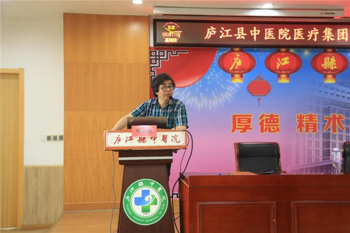 为加强医院中层干部队伍建设,提高医院现代化管理水平,打造高效执行力团队,6月11日下午,庐江县中医院医疗集团举办“现代医院管理能力提升”专题培训,特邀知名管理专家周诚忠教授来院授课,医疗集团党委书记、院长陈明及班子成员,七家分院班子成员,三办十三中心成员,院中层干部参加培训。