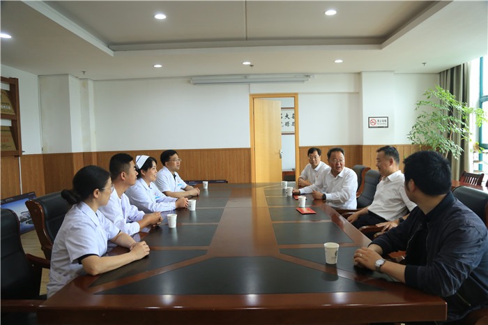 6月22日上午,在端午节来临之际,合肥市委常委、政法委书记马军行看望慰问我院第三批支援武汉医务人员——胡斌、卢睿敏,庐江县委书记王连贵,县委常委、组织部长、统战部长李卫等导陪同参加。
