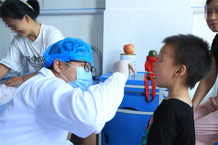 防保科人员协助县疾控中心流调人员对3名患儿采集咽拭子和肛拭子。