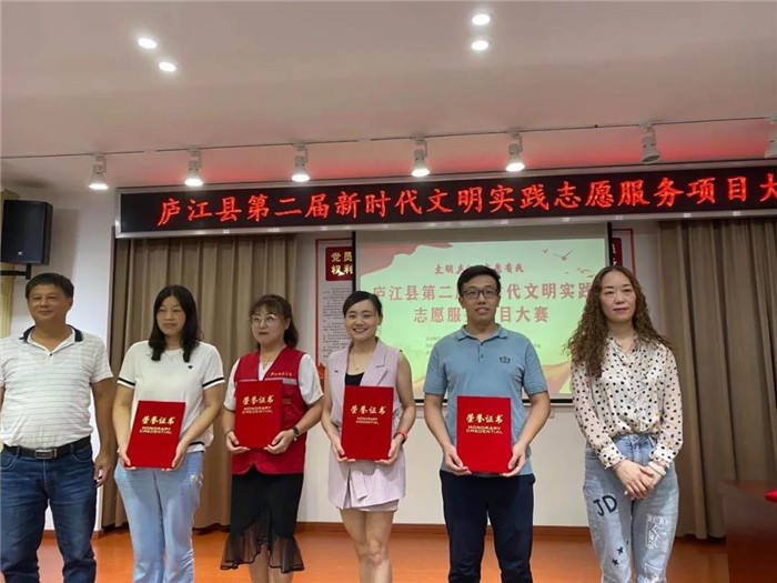 7月17日,庐江县第二届新时代文明实践志愿服务项目设计大赛如期举行。此次比赛共有30个项目参加,我院“中e人开讲啦!”健康大讲堂志愿服务项目在比赛中荣获铜奖。