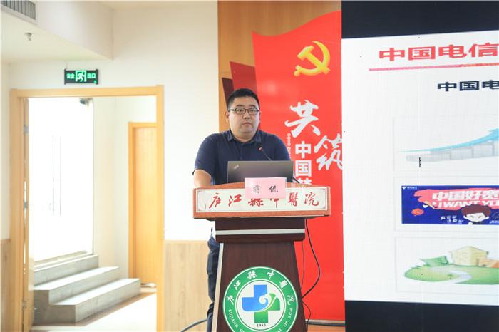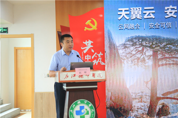 合肥电信副总经理刘松为大会致辞。安徽电信、安徽中杰信息专家对智慧医疗、网络安全及等保进行介绍,讲述了“上云”对医院信息化建设的重要推动作用。