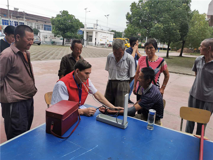 白山分院党支部组织党员志愿者乘船来到白山镇十联村,对全村的地表进行了全面消杀,并对村民们进行健康指导,免费发放常备药品;对白山中学抗洪抢险部队驻地的宿舍食堂进行全面消毒;到安置点进行灾后健康教育,为群众进行健康体检、发放应急药品。