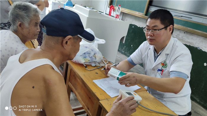 万山分院对工业园过水区开展消杀,为水关中学安置点群众测量血压、健康体检。
