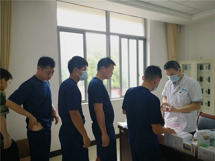 我院皮肤科主任李康东行来到县消防大队,耐心、细致地询问和检查线消防官兵的皮肤状况,为他们治疗皮肤疾病,免费发放药品,传授防病知识,叮嘱他们保重身体,加强防范,提高自我防护意识与能力,筑牢防汛线人员“健康堤坝”。