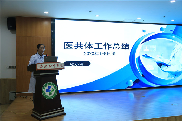 党委副书记钱小清从党建、疫情防控、专家下沉、中心药房、健康促进中心、后勤管理工作等方面,对2020年1-8月份医共体工作进行全面总结。