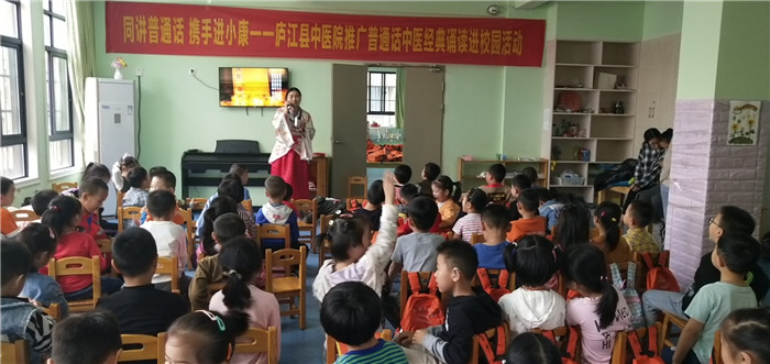 2020年9月14日—20日是第23届全国推广普通话宣传周。为大力推广普通话,弘扬中医药文化,营造“讲普通话、用文明语”良好氛围,近日,庐江县中医院走进庐城小百灵幼儿园,开展推广普通话中医经典诵读进校园活动,让孩子们现场感受到了中医的无穷魅力。