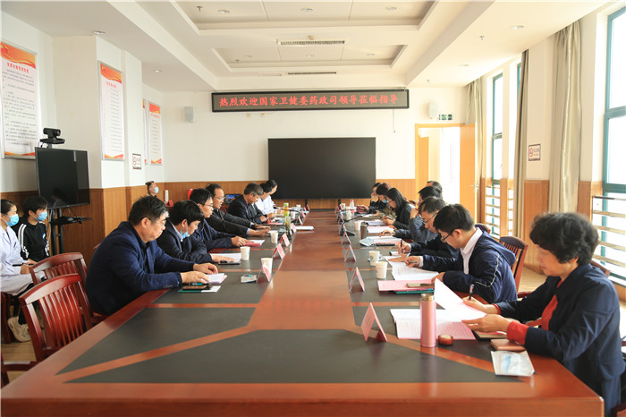 10月19日上午,国家卫健委药政司副司长张锋、药政司药品使用管理处处长苏巍巍、药政司药物政策处二级调研员马黎黎、药政司药品目录管理处干部毛怡雪、药具管理中心药品监测评价处处长张爱民、药具管理中心药物政策评估处一级主任科员沈德政一行莅临我院调研,安徽省卫健委药政处处长王俊宝、合肥市卫健委二级调研员沈慧珍、合肥市卫健委药政处处长何海燕陪同调研,庐江县人民政府副县长何江宏,卫健委主任董林,卫健委副主任张先锋,卫健委党委委员许春进,中医院医疗集团党委书记、院长陈明,县医院医疗集团党委书记、院长莫桂森及相关领导参加了座谈会。