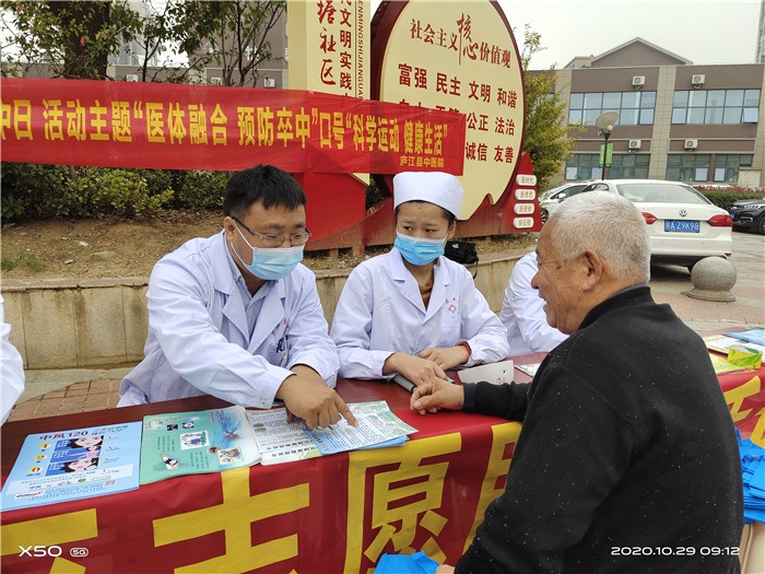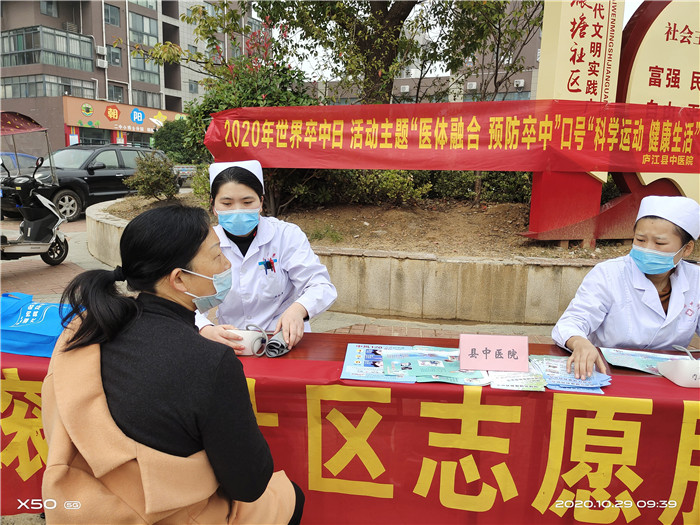 为提高广大居民脑卒中防治意识与能力,进一步宣传普及脑卒中防治知识,筛查脑卒中高危人群,10月29日上午,庐江县中医院组织中e人志愿服务队志愿者走进庐城磙塘社区,开展“世界卒中日”义诊活动。