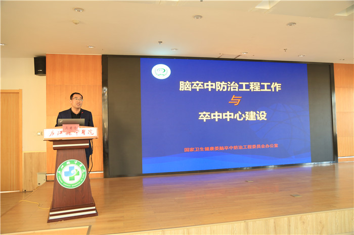专家组组长吴君仓详细介绍了脑卒中防治工程工作情况及卒中中心建设要求。