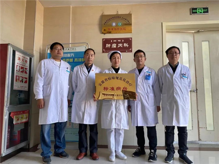 2020年10月,我院肿瘤内科获安徽省肿瘤质量控制中心授予“安徽省癌痛规范化治疗标准病房”称号。“癌痛规范化治疗标准病房”的成功创建,标志着我院肿瘤内科将进一步改善对肿瘤患者的医疗服务,加强医护合作、医患合作,建立癌痛动态评估机制,实施癌痛个体化治疗,达到癌症患者无痛生存,提高肿瘤患者生存质量。