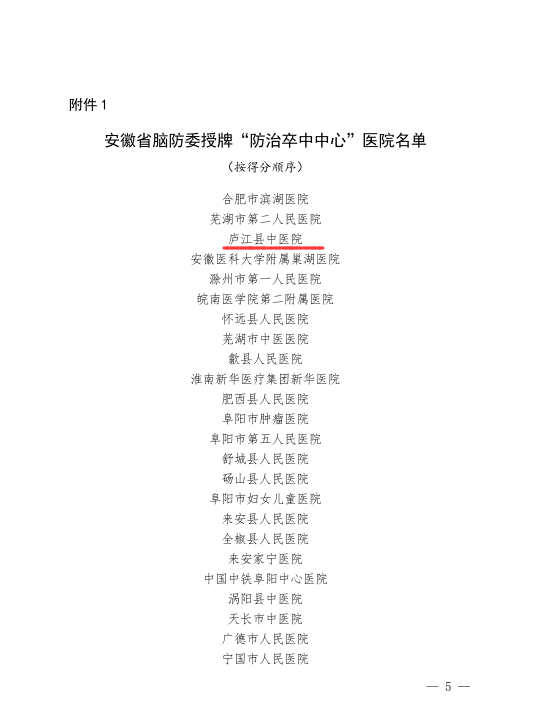 近日,安徽省卫生健康委发布《关于2020年第二批卒中防治中心建设评估情况的通报》,我院卒中中心以高分成功通过验收,成为安徽省脑防委2020第二批授牌“防治卒中中心”单位。