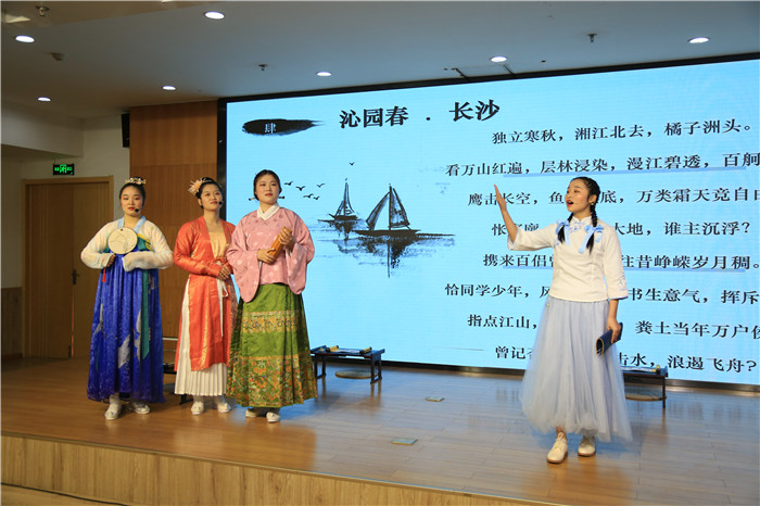 伴着阵阵悠扬的开场曲目,比赛正式开始。选手们运用服装、音乐等丰富的表现形式,时而激情澎湃,时而浅吟低诵,声情并茂地表达对祖国传统文化的热爱、现场活动精彩纷呈、赏心悦目,精彩的诵读表演赢得现场观众阵阵掌声。