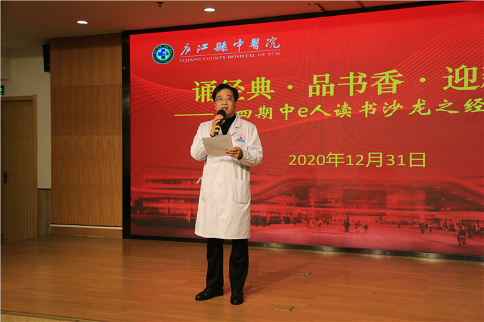 12月31日下午,在元旦佳节来临之际,庐江县中医院第四期中e人读书沙龙之经典诵读比赛在院第三会议室隆重举行。院领导班子成员、全体中层干部、医务人员共计200余人观摩此次大赛。