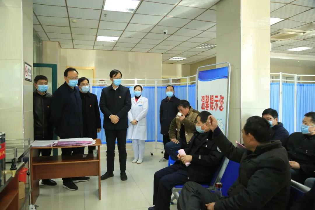 2021年1月1日上午,县委副书记、代县长周天斌,副县长何江宏一行来院就新冠疫苗接种和疫情防控等情况进行督查指导,县卫健委主任董林,医院党委书记、院长陈明及领导班子陪同参加。